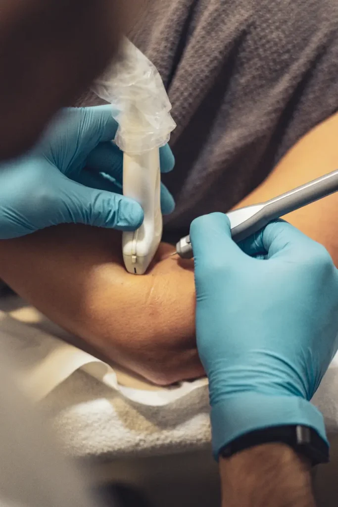 La EPI es un tratamiento que se aplica con una aguja muy fina, similar a las de acupuntura, guiada por ecografía, justo en el punto del tejido que está dañado (por ejemplo, en un tendón con una tendinopatía desde hace meses o una rotura muscular mal cicatrizada que está comprometiendo a otros tejidos).